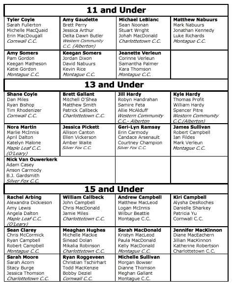 Memorial 13 and under section of the PEI Novice Championships.