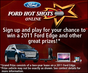 For the third consecutive year, Ford of Canada, in collaboration with the Canadian Curling Association, has launched an interactive on-line version of the Hot Shots skills competition. Curling fans will have a chance to win a two-year lease on a new 2011 Ford Edge SEL FWD, an approximate retail value of $22,000, plus an Apple iPod Touch ($250 value).