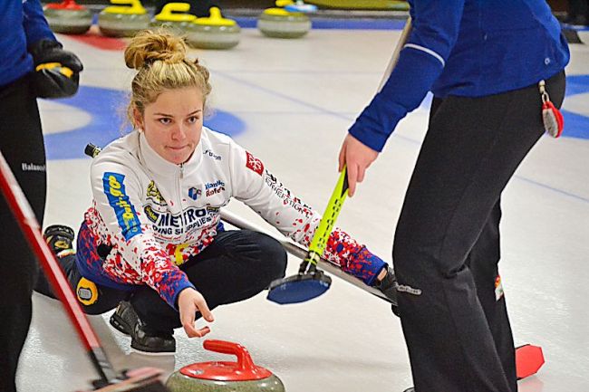 chloemChloe McCloskey throws fourth stones on the Katie Fullerton rink at the Canadian junior curling championships.
