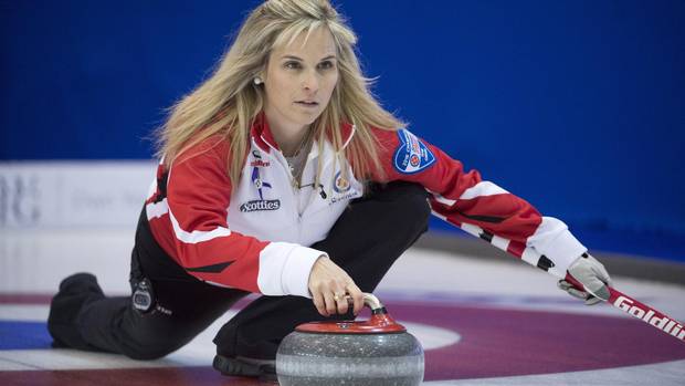 Team Canada skip Jennifer Jones makes a shot during the third draw against P.E.I. at the Scotties Tournament of Hearts on Feb. 21.