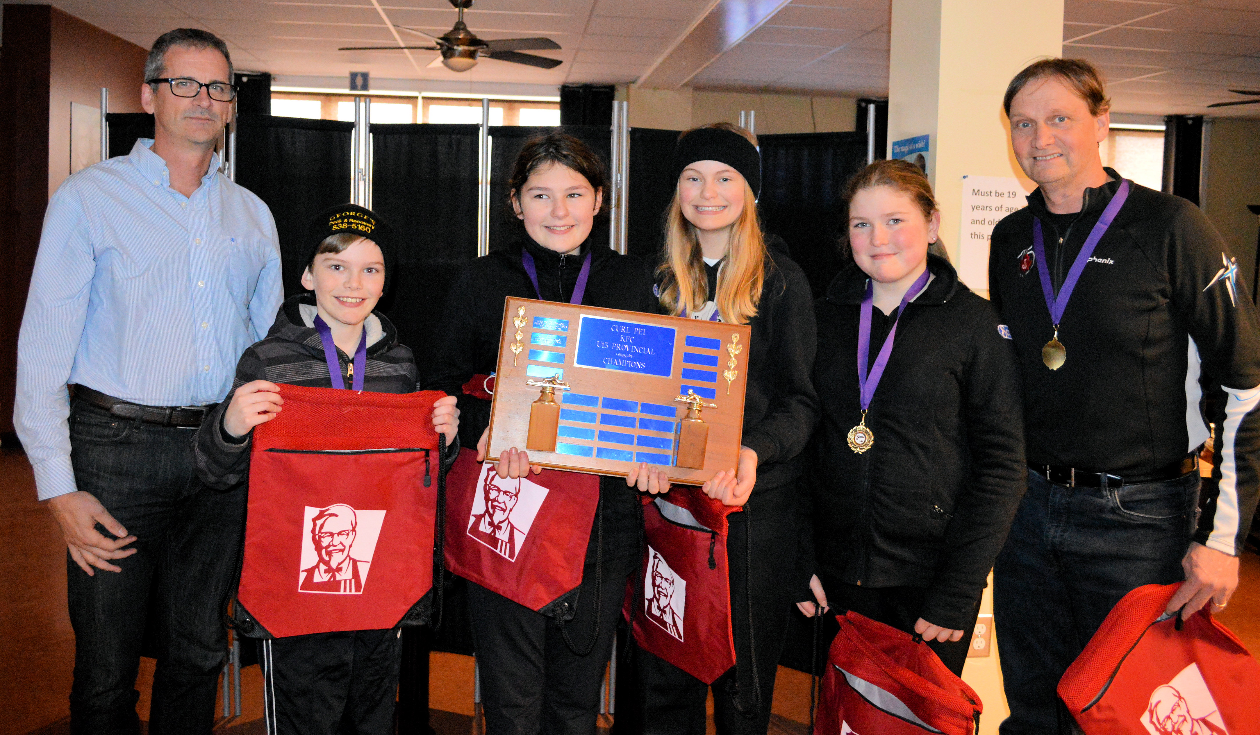 The Rachel MacLean rink from the Cornwall Curling Club won all seven of their games to capture the KFC Provincial Under 13 Curling Championships, which wrapped up this afternoon at the Charlottetown Curling Complex, edging their clubmates, the Chase MacMillan team, by a 4-3 score in the final. The six end game was tied 3-all after five ends, with MacMillan having last rock advantage coming home, but MacLean stole a single in the last end for the championship.