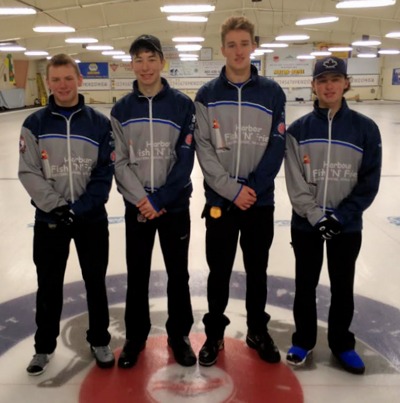 The Ryan Abraham team from the Mayflower Curling Club in Halifax won the 10 team Junior Men’s division, beating the Evan McDonah squad from the Truro Curling Club in the 1 pm final. Abraham had a one-point lead after eight ends but stole a single in the 9th and a deuce in the 10th end for a 7-3 final score. Other members of the winning Ryan Abraham rink are third Mitchell Cortello, second stone Jake Flemming, and lead Thomas Mosher. Paul Flemming is team coach. Other members of the McDonah team include Adam McEachern. Alex McDonah and David McCurdy, with coach Dave Williams. Abraham edged Liam Marin and his squad from the Thistle St. Andrews club in Saint John New Brunswick 6-5 in an extra end in the Sunday morning semi-final, while McDonah edged Leslie Noye and his foursome from the Western Community Curling Club in Alberton, also by a 6-5 score.