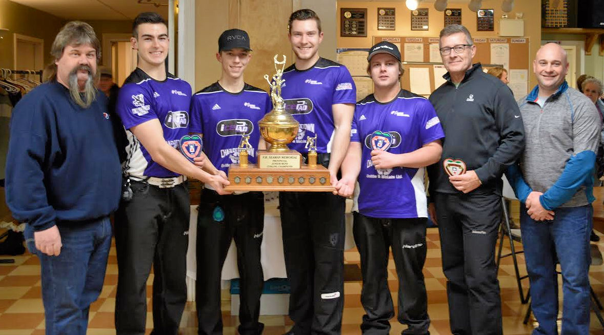 (L-R): Kevin Smith (sponsor), Brooks Roche, Noah O’Connor, Christopher Gallant, Tyler Smith, Peter Gallant (Coach), Philip MacDonald (sponsor)