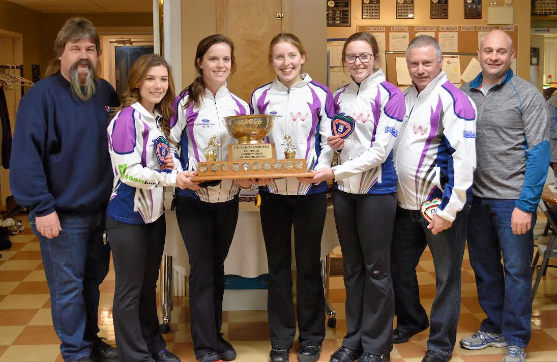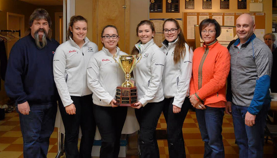 Following today’s final games at the Pepsi Provincial Junior Curling Championships at the Montague Curling Club, it was time to present the trophies to the winners and runners-up, as well as the certificates to the winners of the Asham Coaching Awards, as voted on by all the coaches, and the Sportsmanship awards, as voted on by the players.