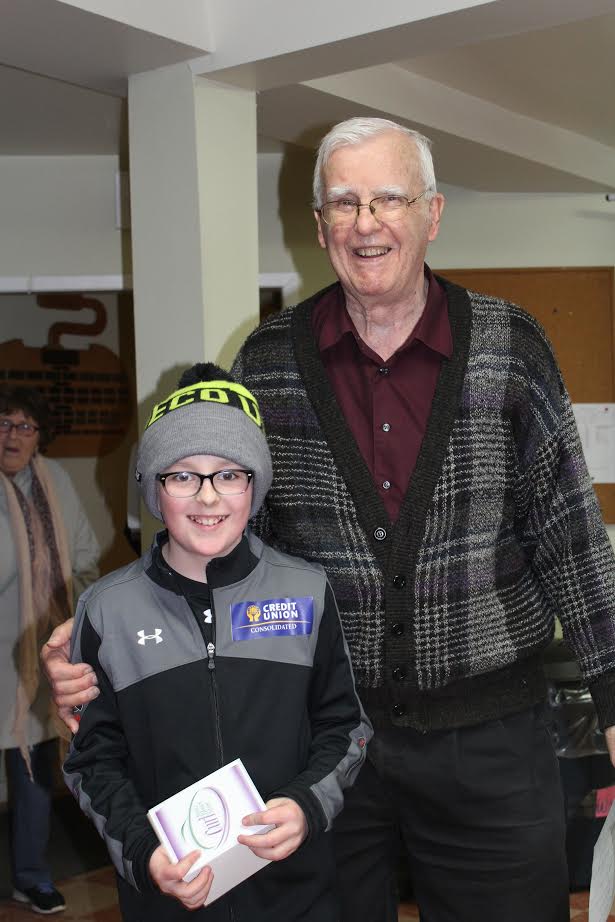 Photo (L-R) Brayden Snow with Fr, Art Pendergast from the Western Community Curling Club