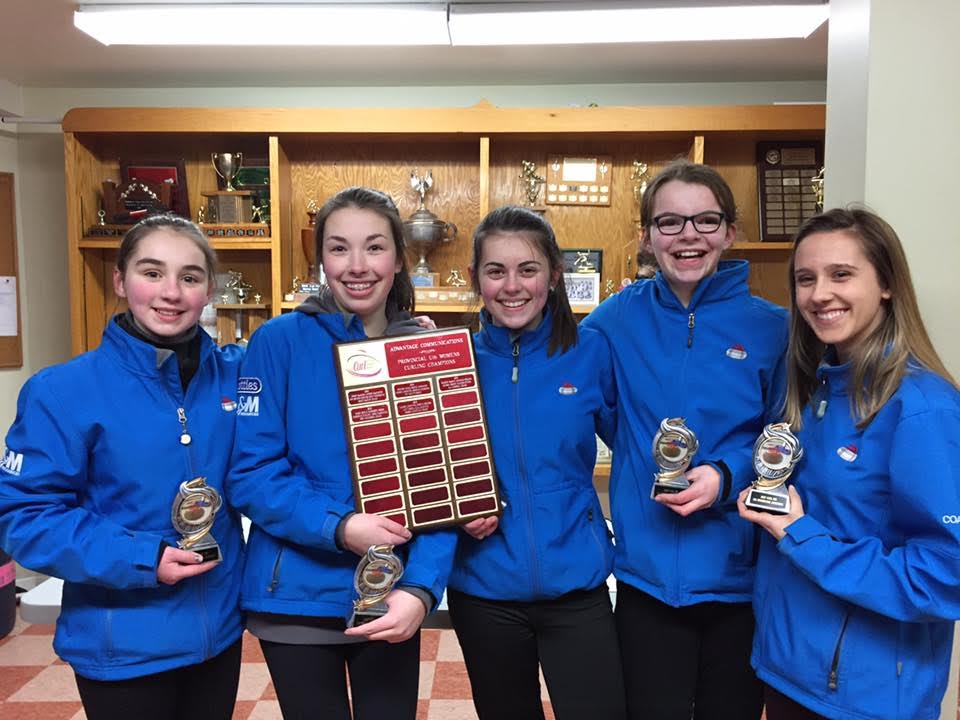 The winning Katie Shaw rink includes third Amy Spence, second Lexie Murray, and lead Grace Bulger, with coach Leigh Gustafson, Playing on the runner-up Burris team are third Sydney Howatt, second Meghan Sherren, and lead Madelyn Cantwell, with coach A.J. Campbell.