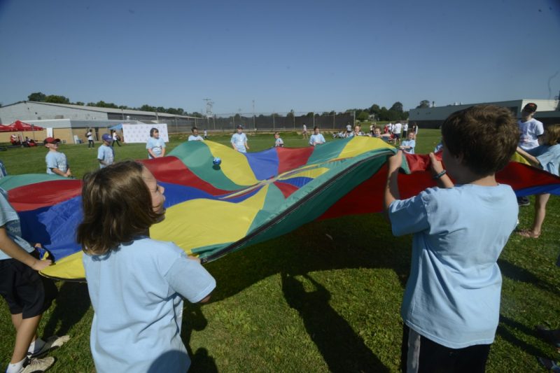 Kids participate in a parachute activity Tuesday during the Jumpstart Games in Charlottetown.