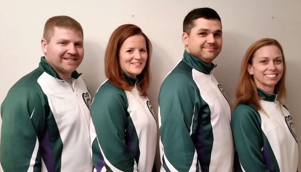 Photo (L-R): Dennis Watts (skip), Jaclyn Reid (third), Erik Brodersen (second), Alison Griffin (lead).