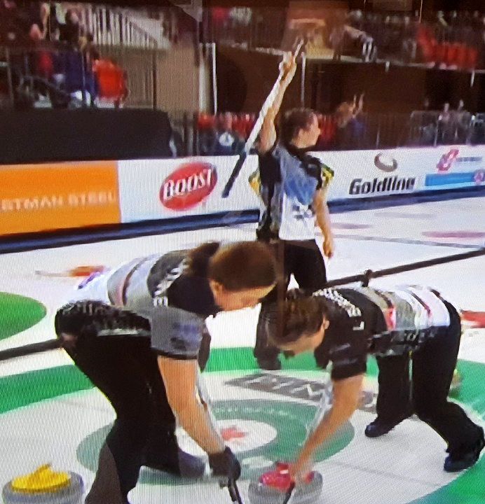 The World Junior Champion Kaitlyn Jones rink, in the event on a sponsor’s exemption, scored two points in the last end of their final round robin game, beating the Rachel Homan team 6-5 to advance to the playoff round of the Canadian Beef Masters Grand Slam of Curling Event in Truro with a 3-1 win-loss record. Homan will also advance with an identical record. The Jones team includes New Dominion PEI’s Lauren Lenentine at third stone.