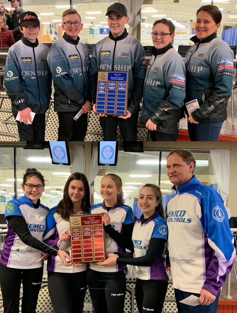 The Brayden Snow rink from the host Silver Fox Curling Club, and the Rachel MacLean team from the Cornwall Curling Club both went undefeated with 5-0 win-loss records this weekend to win the provincial Under 16 Curling Championships. Snow, backed up by third Cruz Pineau, second stone Brock Rochford, and lead Anderson MacDougall, with coach Shelley MacFadyen, was trailing 5-3 after four ends of play in the Sunday afternoon boy’s final, after the Chase MacMillan team from the Charlottetown Curling Complex stole three points in the fourth end. The teams traded deuces in the next two ends, with Snow tying the game with another pair in the seventh end, and pulling out an 8-7 win with a stolen single in the final end. The Chase MacMillan finalist team, who finished with a 2-2 win-loss record, also includes third Jack MacFadyen, second Liam Barbrick, and lead Davis Nicholson, and is coached by David MacFadyen. The third team in the boy’s event, the Samuel Shaw foursome from the Montague Curling rink finished without a win, but came within two points of the winning team in one of their matches.