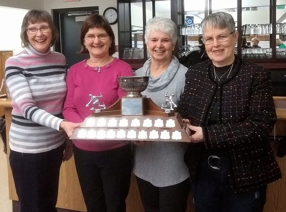 The Silver Fox rink of Lou Nowlan, David MacFadyen, Earle Proude, and Alan Montgomery has won the men’s division of the Maritime Masters Curling Championship at the Riverside Country Club in Rothesay NB, with a 4-1 win-loss record. The Cornwall Curling Club team of Shirley Berry, Sherren MacKinnon, Linda Fairhurst, and Marjorie Matthews took the women’s title, also with a record of four wins and one loss.