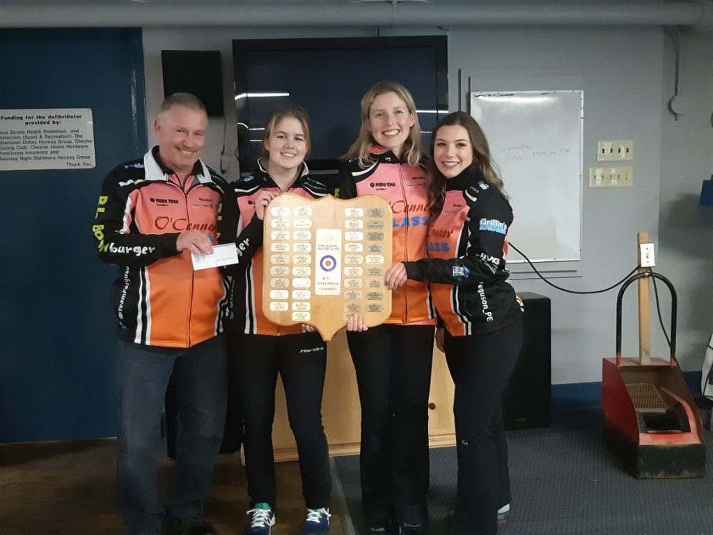 On the junior men’s side, Cornwall’s Mitchell Schut rink finished the round-robin just out of the playoffs with a 2-2 win-loss record, losing their opener to Ethan Young of Halifax, but beating Ryan Strang and his Lower Sackville foursome, and Keith Langlois of Halifax, in their next two games. The Schut squad lost their final qualifier round match to defending champ Graeme Weagel from Halifax. Weagle went on to repeat as event champion, with a 6-1 final score.