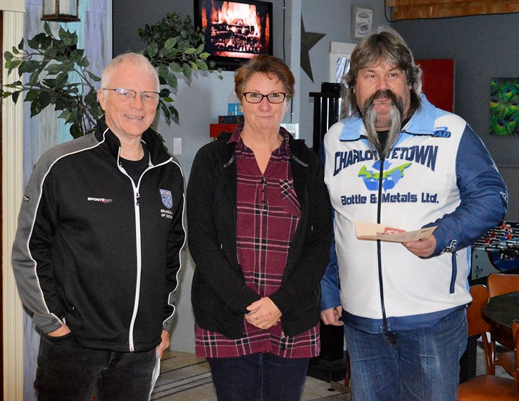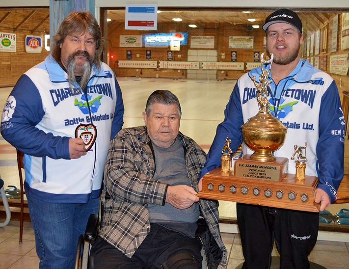 As well, in honour of Tyler Smith’s final junior event in PEI, three generations of the Smith family, father Kevin, grandfather Grant, and Tyler took time for a photo with the F.R. Seaman Memorial Trophy. Kevin informed the crowd that was Tyler’s 57th game in a U21 Provincial Championship event. He has now won five PEI Junior titles, his first at age 14, as well as a New Brunswick Junior title.