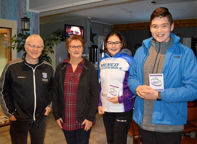 Left to right: Curl PEI Vice President Craig Mackie, Crapaud Community Curling Club President Vivian Sherren, Rachel MacLean, Jack MacFadyen