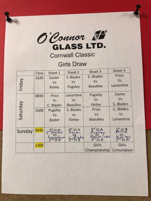 The Girl’s crossover semifinals are underway this morning at the O’Connor Glass U16 Cornwall Classic. Cornwall’s Ella Lenentine is facing Team S. Blades while the host Cornwall club’s Team Easter is playing Team S Blades. Watch both these games live online at https://www.facebook.com/teambladescurl/ (Sophie Blades) and https://www.facebook.com/teamcblades (Cassidy Blades)