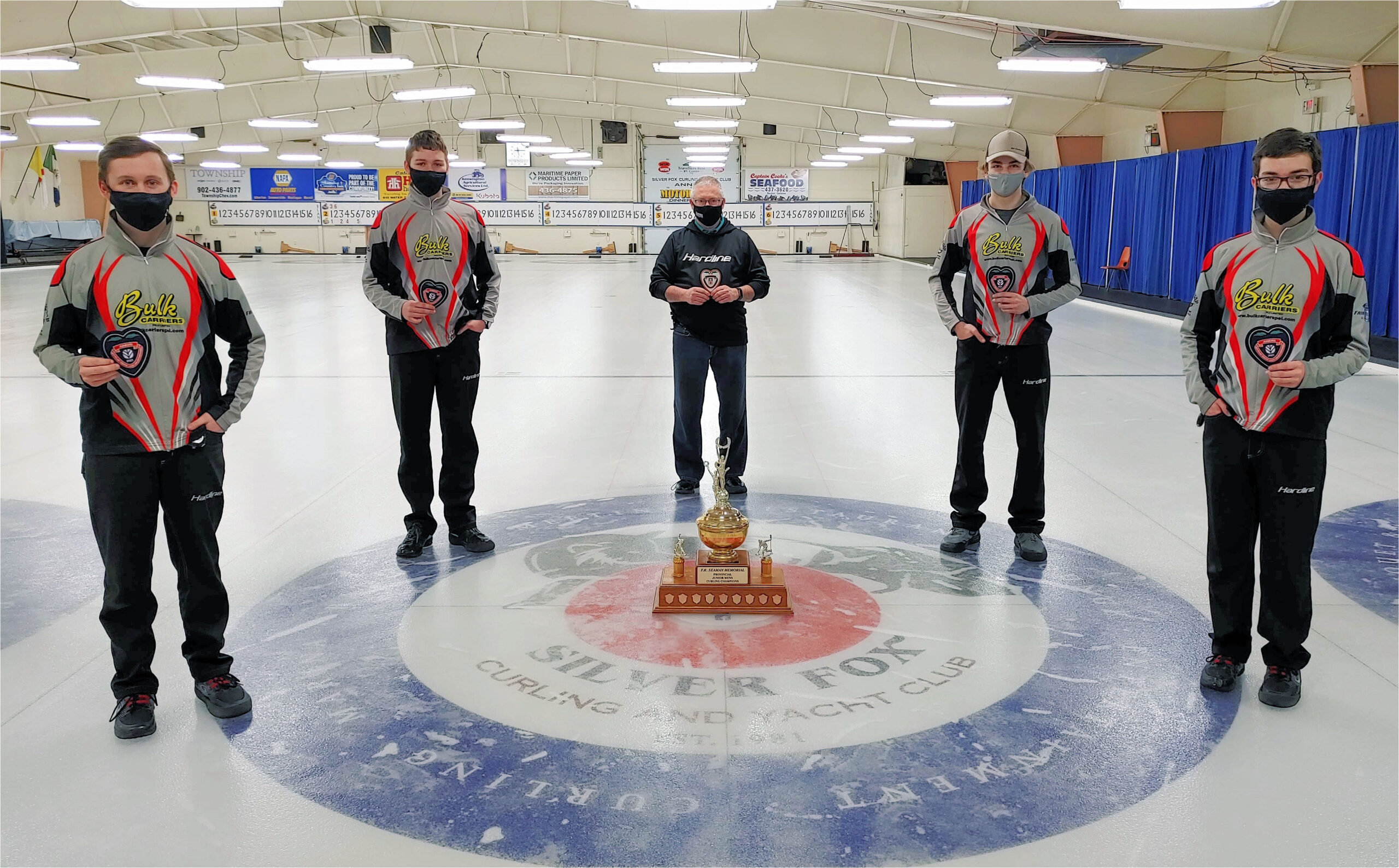 Snow Finalist rink, left to right: Brayden Snow (skip), Jack MacFadyen (3rd), David MacFadyen (coach), Liam Barbrick (2nd), Davis Nicholson (Lead)