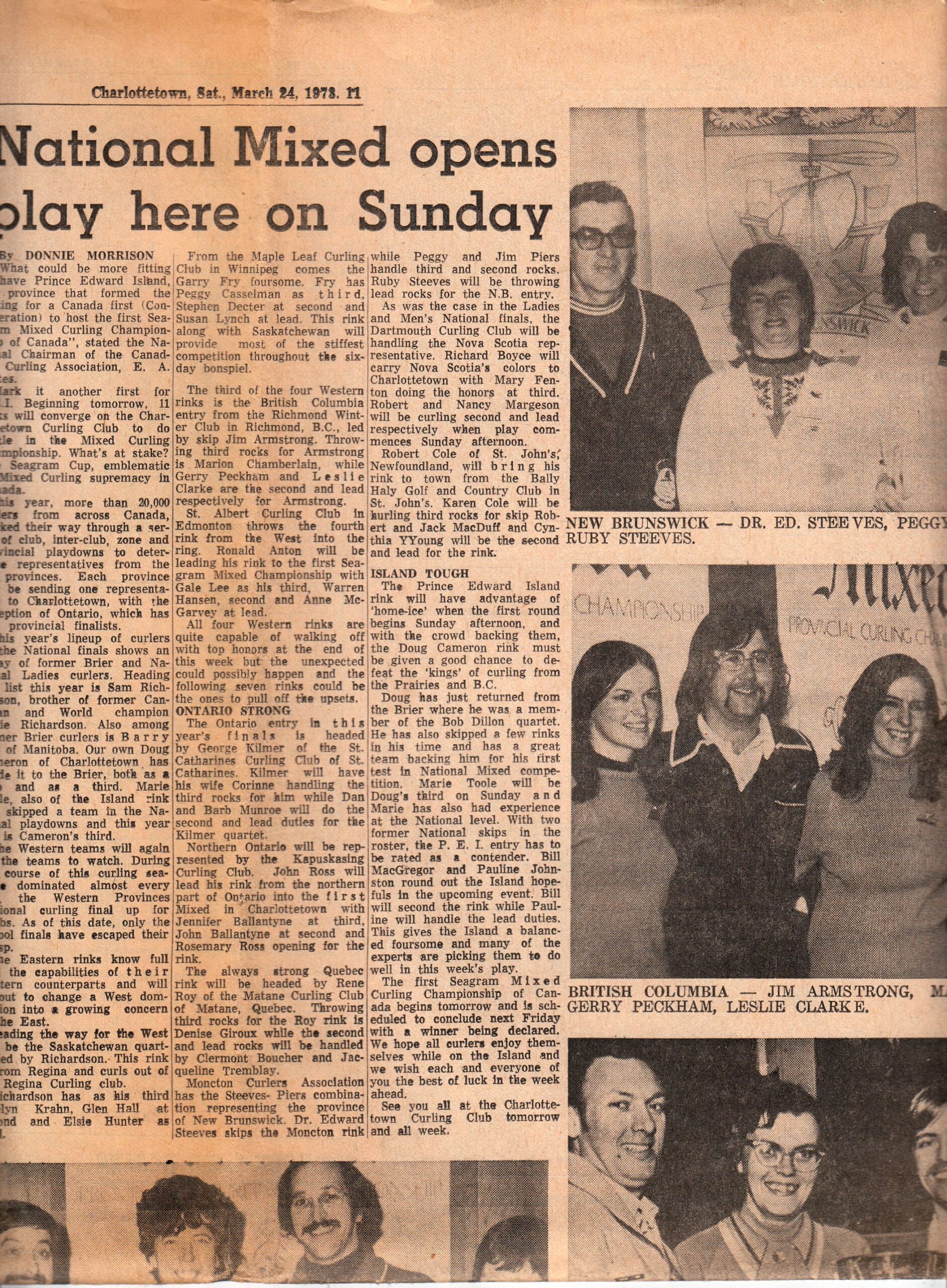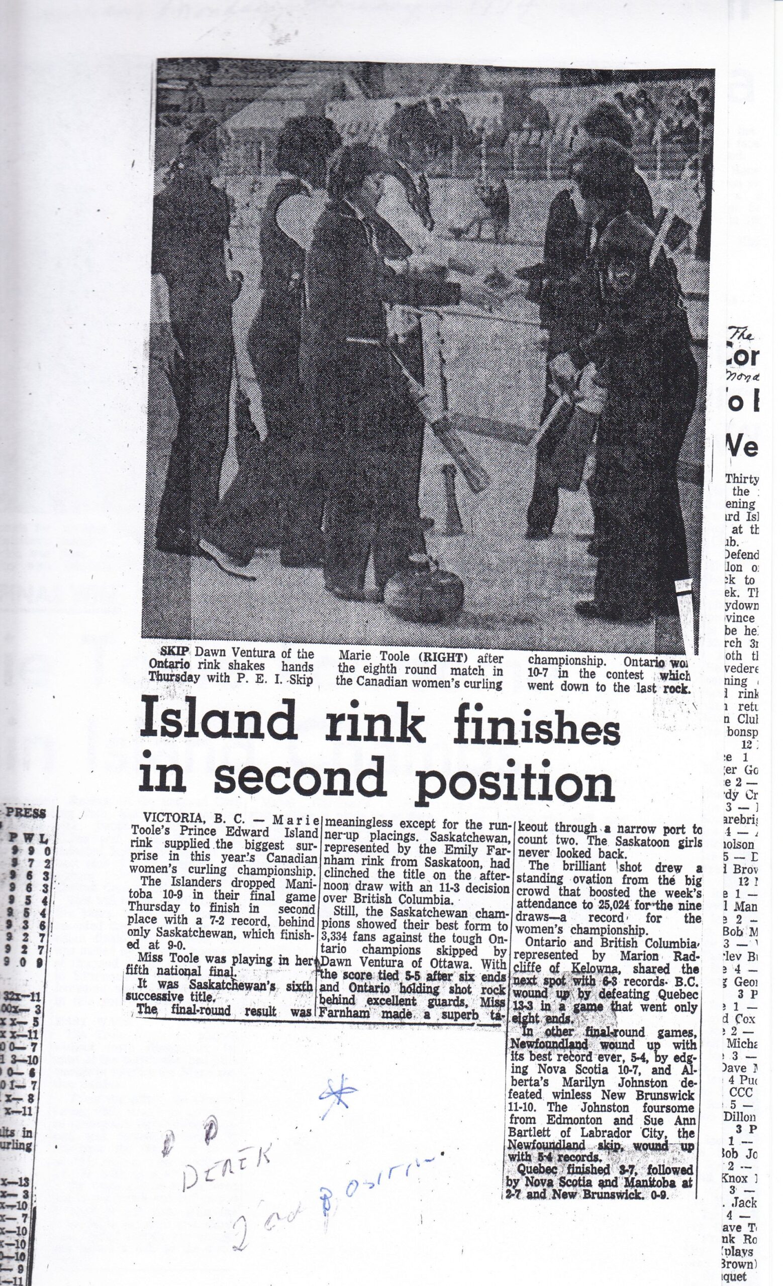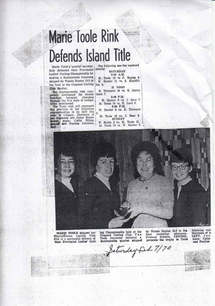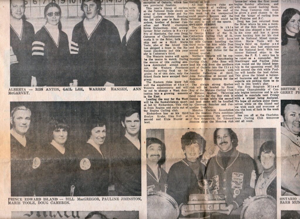 Here are clippings related to provincial women’s (including Scott/Scotties) Mixed, and some Junior Men’s curling.