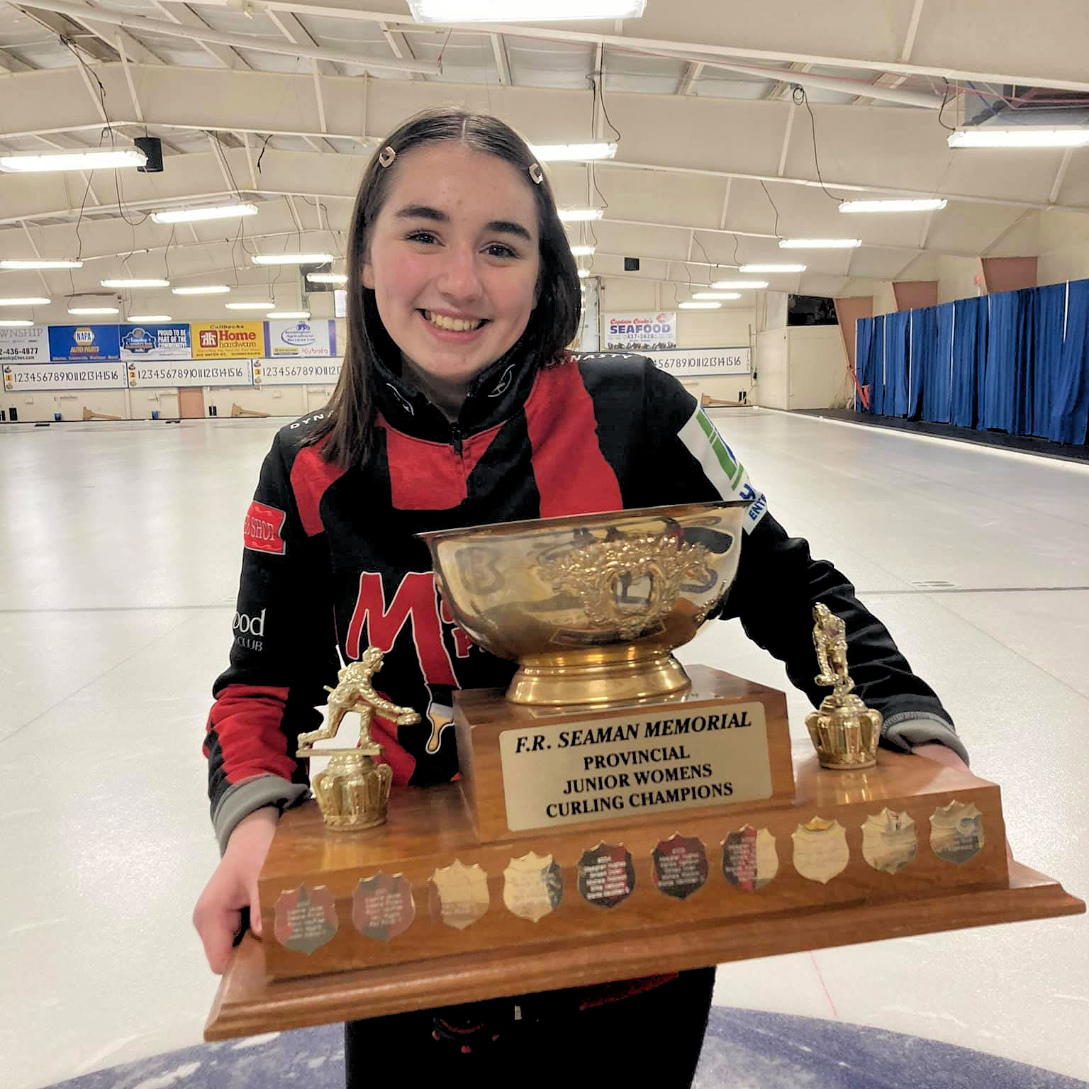 She was on the 2021 PEI Junior Women’s finalist rink and the 2020 PEI Provincial Junior Women’s championship team, as well as the finalist rink at the 2019 PEI Canada Games, the 2018 PEI Mixed Doubles, the 2017 Provincial U16, and the 2015 Provincial Under 13 Championships. She has been selected for the provincial team attending the 2022 World Junior Qualifiers in Saskatoon.