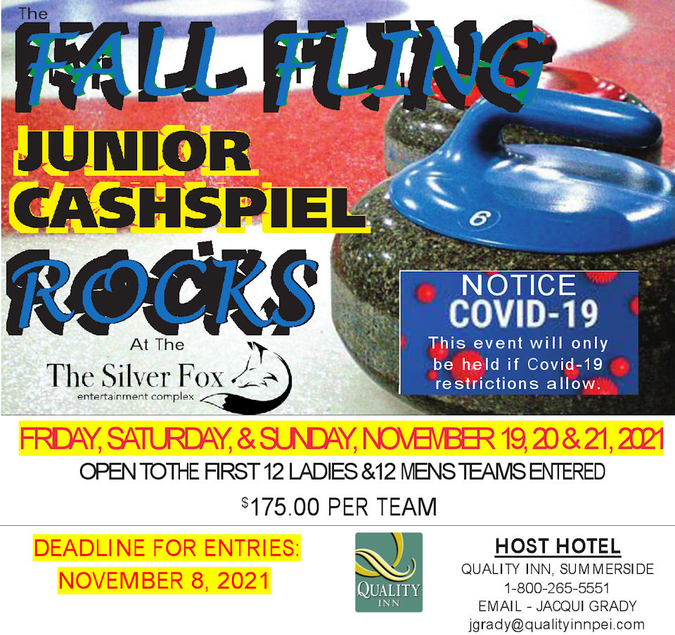 The annual Fall Fling Junior Cashspiel resumes this November after the cancellation due to Covid – 19 in 2020. This year’s Fall Fling will have a new organizer, with Cory Snow taking over from Sheila Compton who previously ran the Event. We would like to thank Sheila for her contributions to making this event one of the best junior curling events in the Maritimes. Registration for this year’s event is still open and organizers encourage teams to contact the organizer immediately to secure their spot. Registration for this year’s event closes November 8th. Entry and event details are on the above event poster. Anyone looking for any further information regarding this year’s event can reach out to the organizer directly.