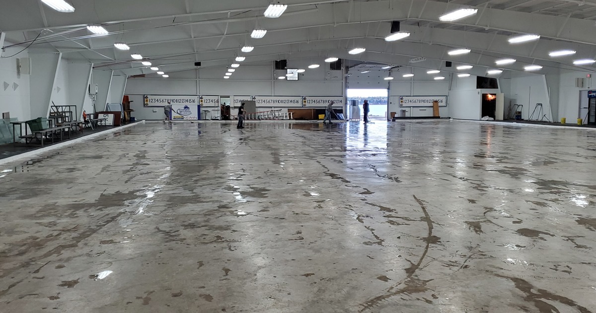 From the Silver Fox Entertainment Complex website, a photo of the final stages before the ice goes in for another season of curling at the Silver Fox Curling Club.