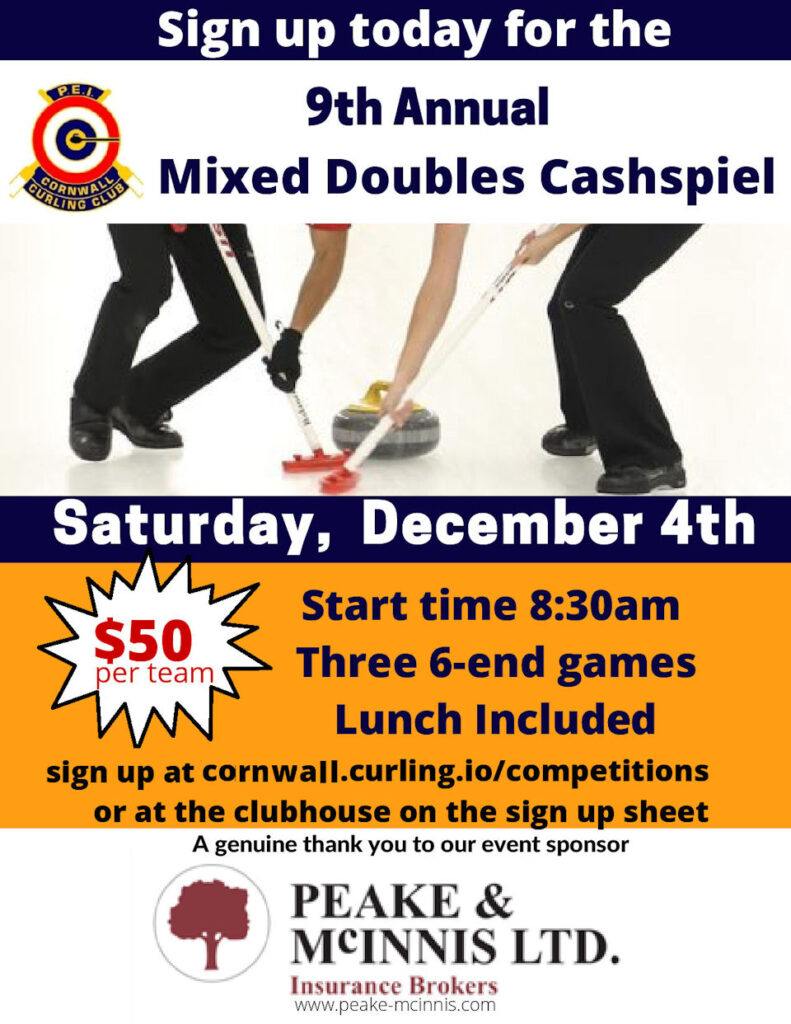 The Club is very excited to welcome a NEW sponsor this year for our Mixed Doubles Cash Curling Bonspiel…. Peake and McInnis Insurance! Thank you to Club Member Susan and her team at Peake and McInnis!
