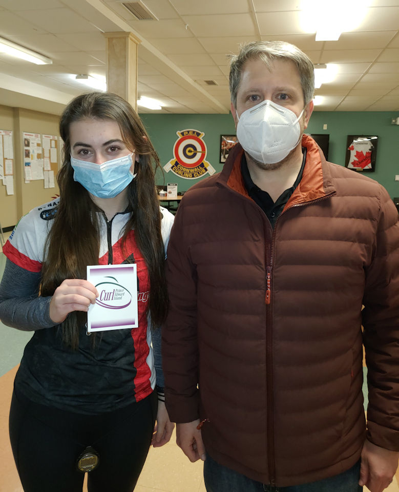 Lexie Murray (left), Sportsmanship award winner for junior women’s teams, with Curl PEI VP Ryan Giddens
