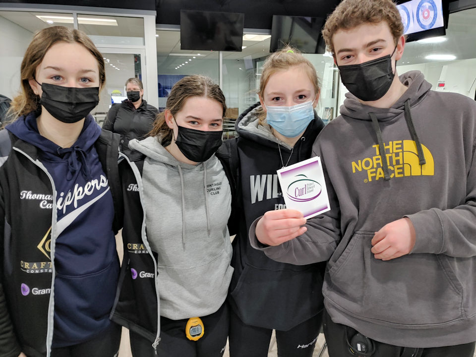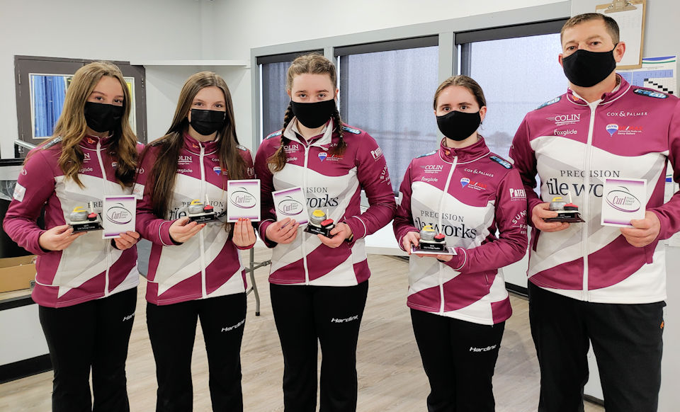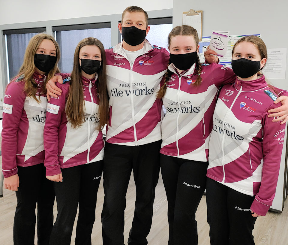 PEI U16 Finalists, Team Lenentine (L-R): Ella Lenentine (Skip), Makiya Noonan (Third), Kacey Gauthier (2nd), Erika Pater (Lead), Robbie Lenentine (coach), from the Cornwall Curling Club