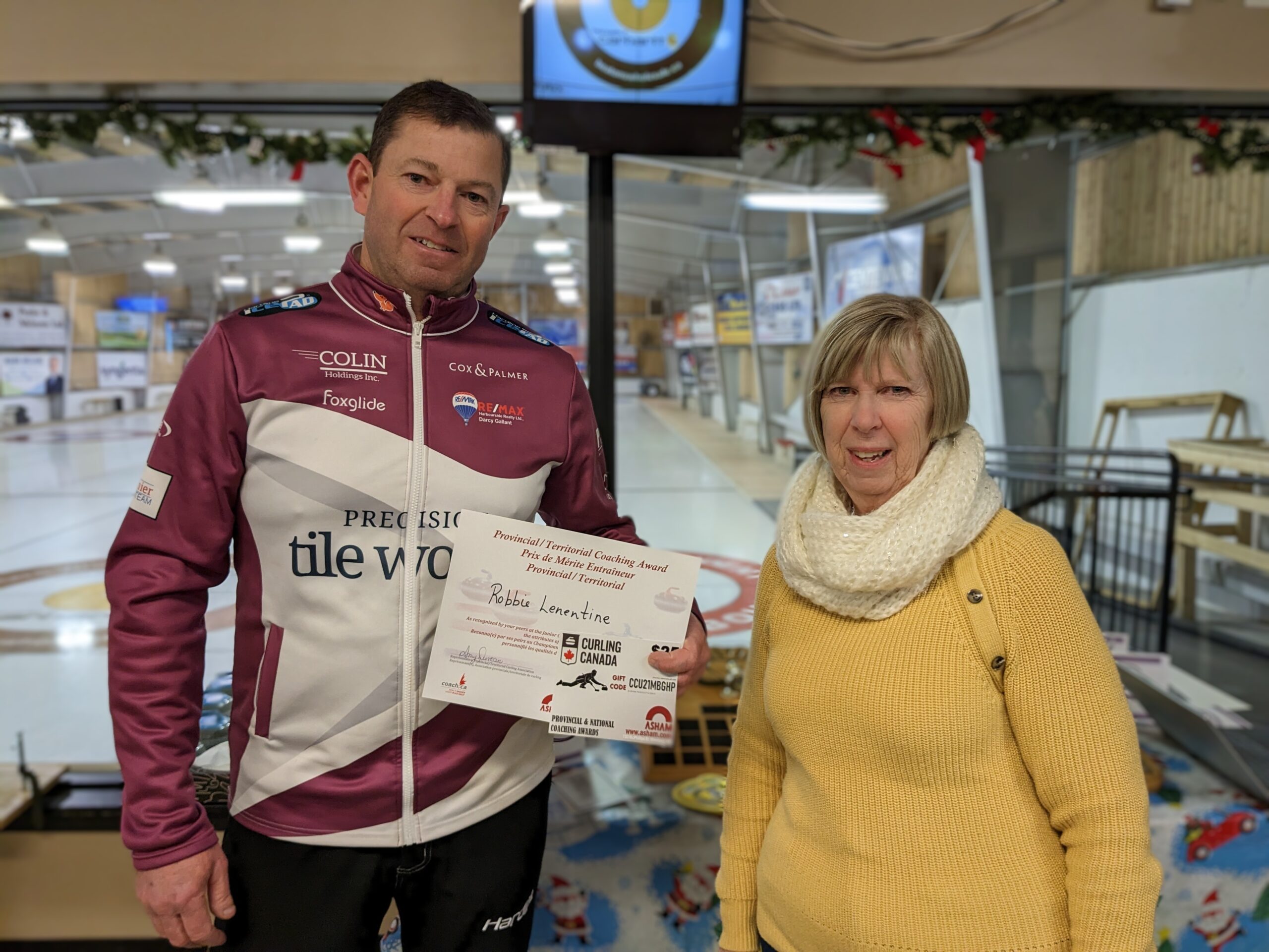 The Provincial ASHAM Coach Awards were given to Robbie Lenentine, coach of Team Lenentine and Kyle MacDonald, coach of Team Shaw from the Montague Curling Club (photo of Kyle is not included).