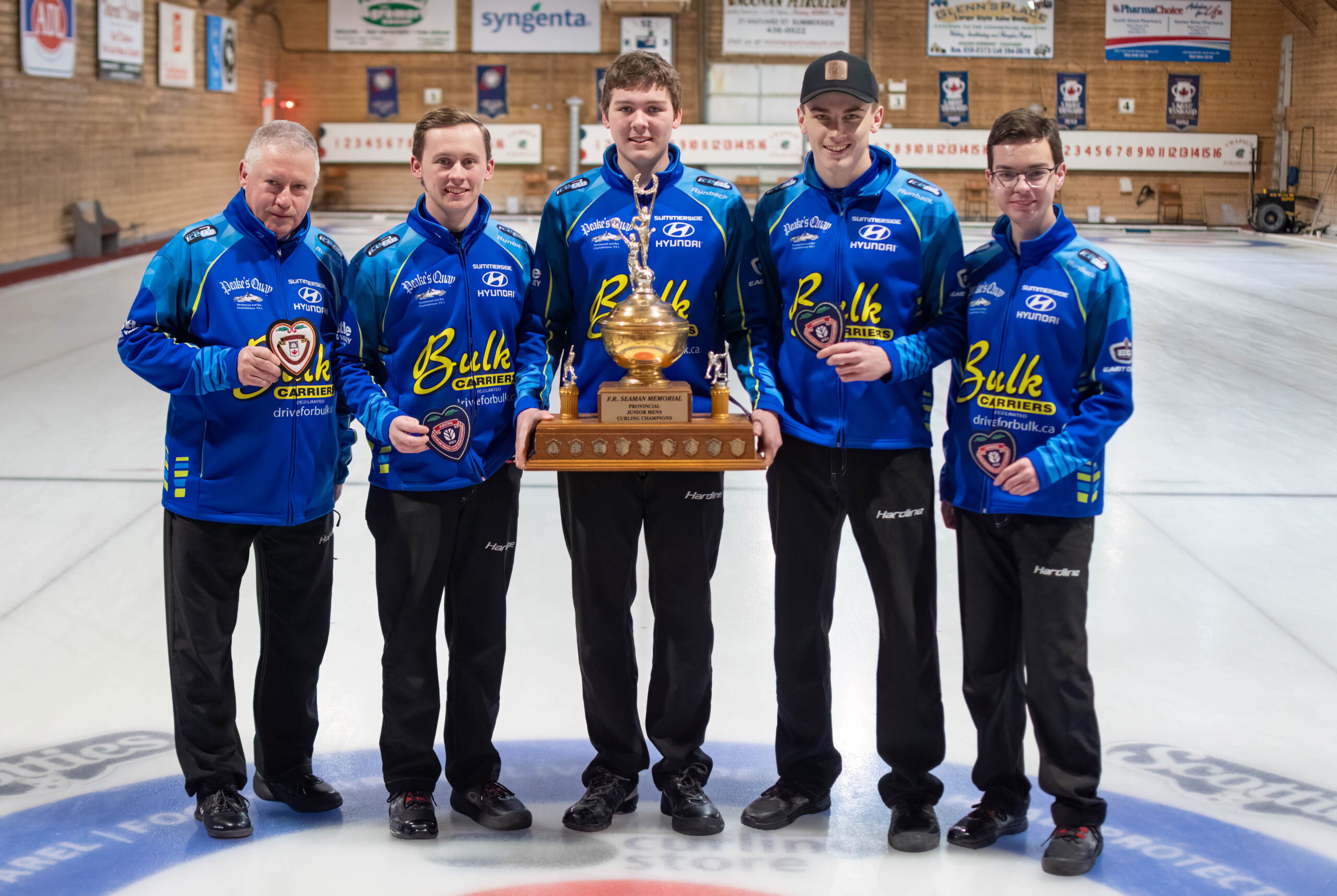 The Mitchell Schut team from the Cornwall Curling Club became a threepeat PEI Pepsi Junior Men’s Champions on Sunday morning at the Crapaud Community Curling Club after winning again the Brayden Snow rink. Like the girl’s division, the championship round was not required.