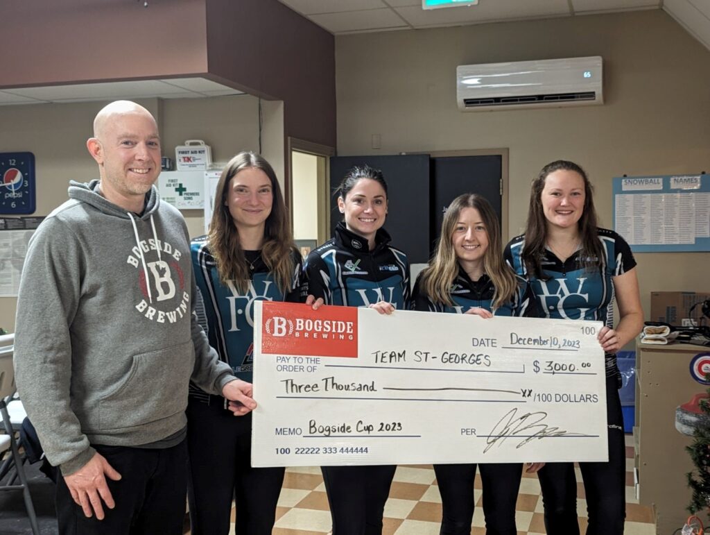 Gagnante!!! Laurie St-Georges and her team of Vice, Jamie Sinclair, 2nd Emily Riley and Lead, Kelly Middaugh captured the Bogside Cup Championship at the Montague Curling Club on Sunday.