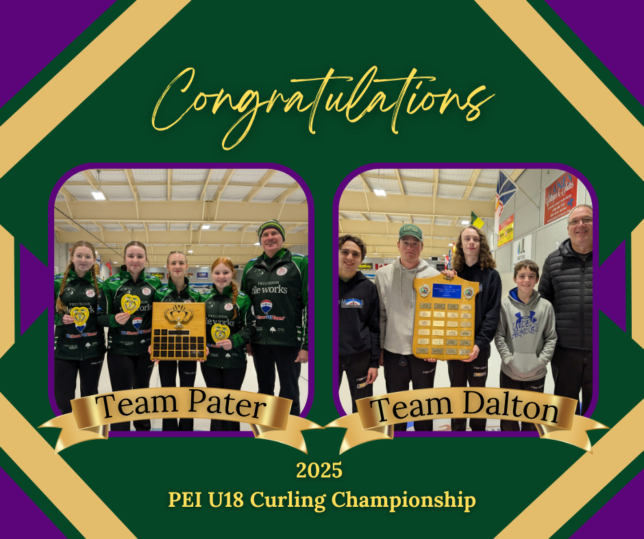 Congratulations to our champions on earning the right to represent PEI at the 2025 Canadian U18 Curling Championships, set to take place February 16-22, 2025, at the Nutana Curling Club in Saskatoon, Saskatchewan!