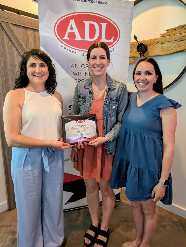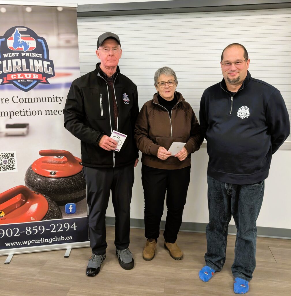(L-R) ADL Representative, Jacqueline Lecky, representing the Souris Curling Club’s Ice Crew, Travis Coffin and Curl PEI President, Jane DiCarlo