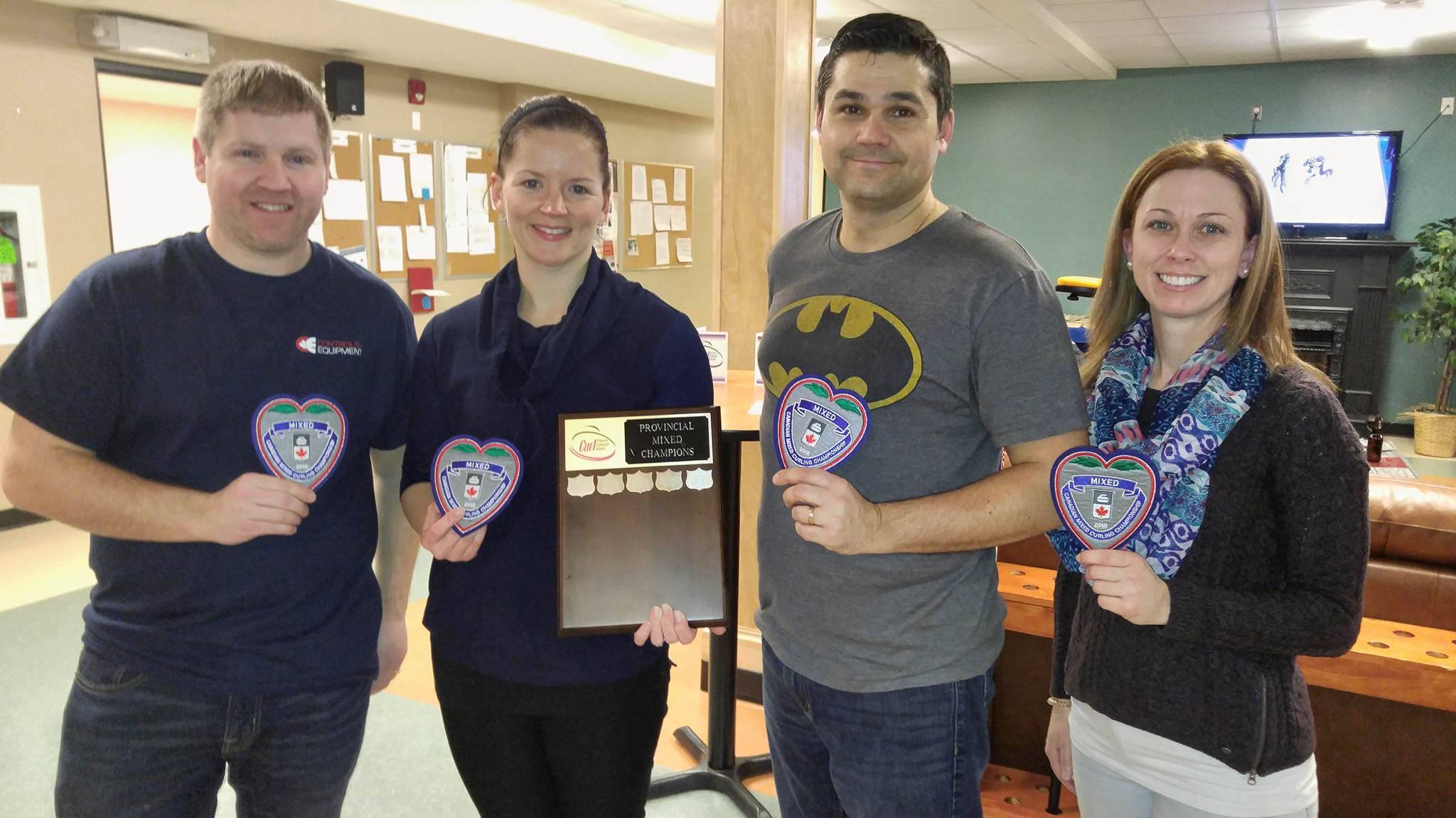 The Dennis Watts rink from the Charlottetown Curling Complex and the Western Community Curling Club in Alberton beat Charlottetown’s Tyler MacKenzie team 7-4 on Monday evening at the Cornwall Curling Club to win the PEI Mixed (Fours) Curling Championship and advance to the 2018 Canadian Mixed Curling Championship, at the Swan River Curling Club in Manitoba, Nov. 12-18, 2017. A stolen deuce in the 5th gave Watts a 6-3 lead, and the teams traded singles in ends six and seven, with MacKenzie running out of rocks in the eighth end. Other members of the winning Watts team are third Jackie Reid and second Erik Brodersen from Charlottetown, along with lead Alison Griffin from Alberton. Rounding out the runner-up MacKenzie foursome are third Aleya Quilty, second Doug MacGregor, and lead Jodi Murphy.