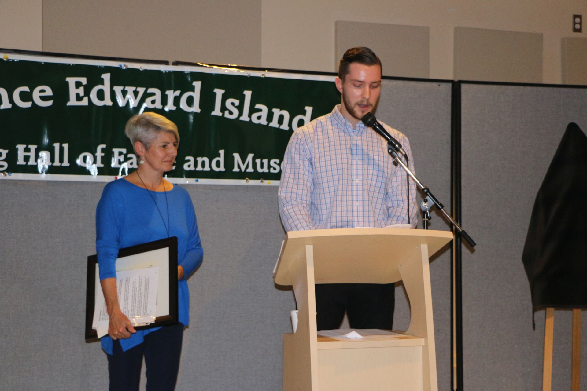 The evening, sponsored by PEI Ford Dealers, Beaton’s Wholesale Dry Goods, Phillips Feed Service, the Town of Cornwall, and the Consolidated Credit Union, started with the inductees, led by Hall of Fame chair Jerry Muzika.