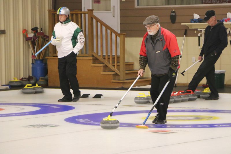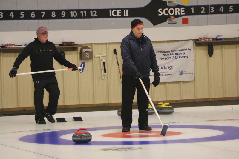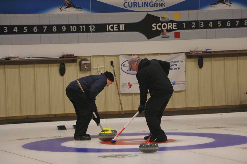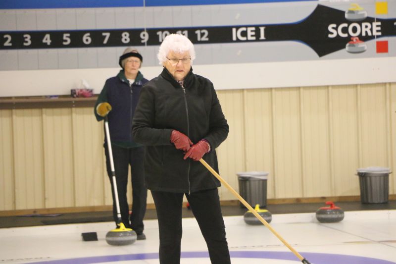 In the four-team double round-robin Women’s division, Myran Craswell and Myrna Sanderson from the Cornwall Curling Club sit at 3-0 following wins over the other three teams. The second half of the double RR goes Wednesday at 11:15 am and 2 and 4:30 pm.