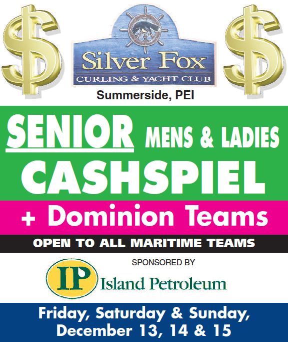 The Silver Fox Curling & Yacht Club in Summerside is hosting a Cashspiel for Senior men’s and women’s teams, and for teams planning to curl in The Dominion playdowns. The event, sponsored by Island Petroleum, is open to all Maritime teams, and takes place Dec. 13, 14, and 15. Men’s play starts at 3:30 Friday, with the first women’s draw at 6 pm.