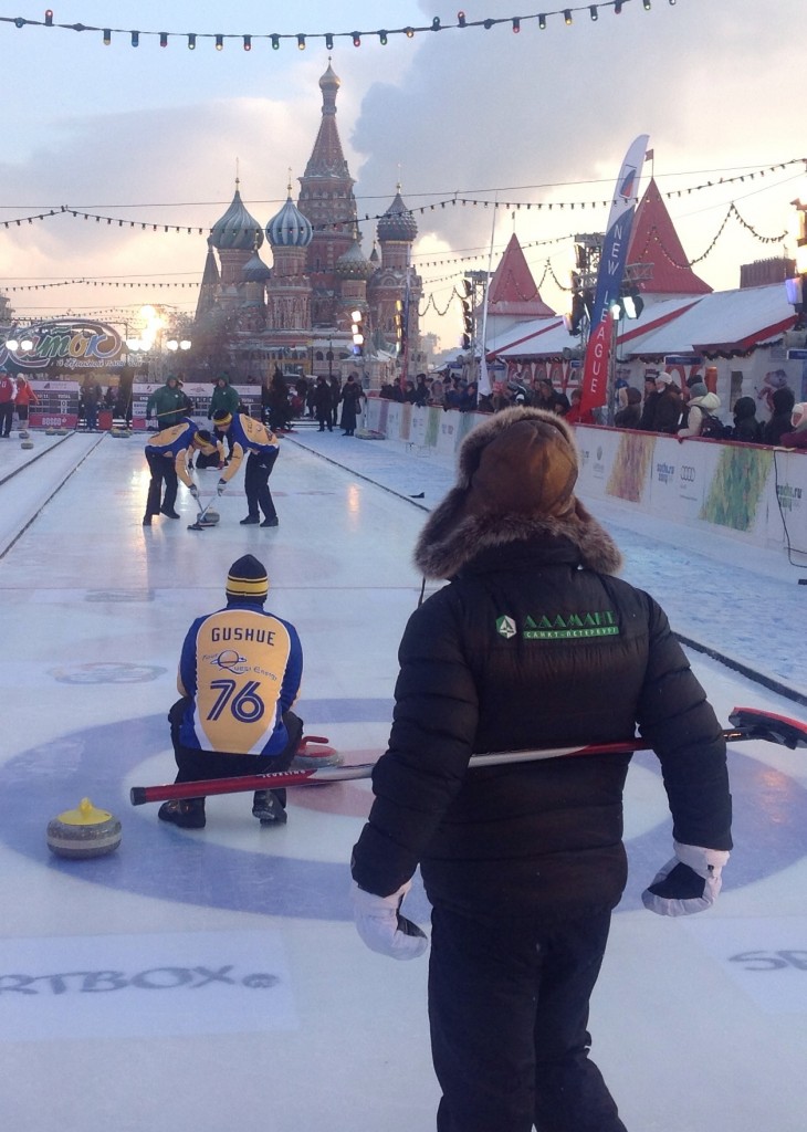 The Canadians reported that the ice this morning was “a little snowy”, and that they had difficulty throwing the rocks hard enough, but said that curling in Red Square was “a fun experience and a well run event”.