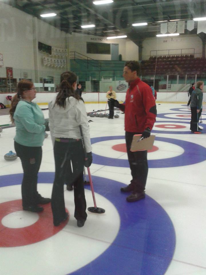 Photo: Former Canadian Junior champion Brett Gallant instructing at the Whitecap Curling Camp last summer