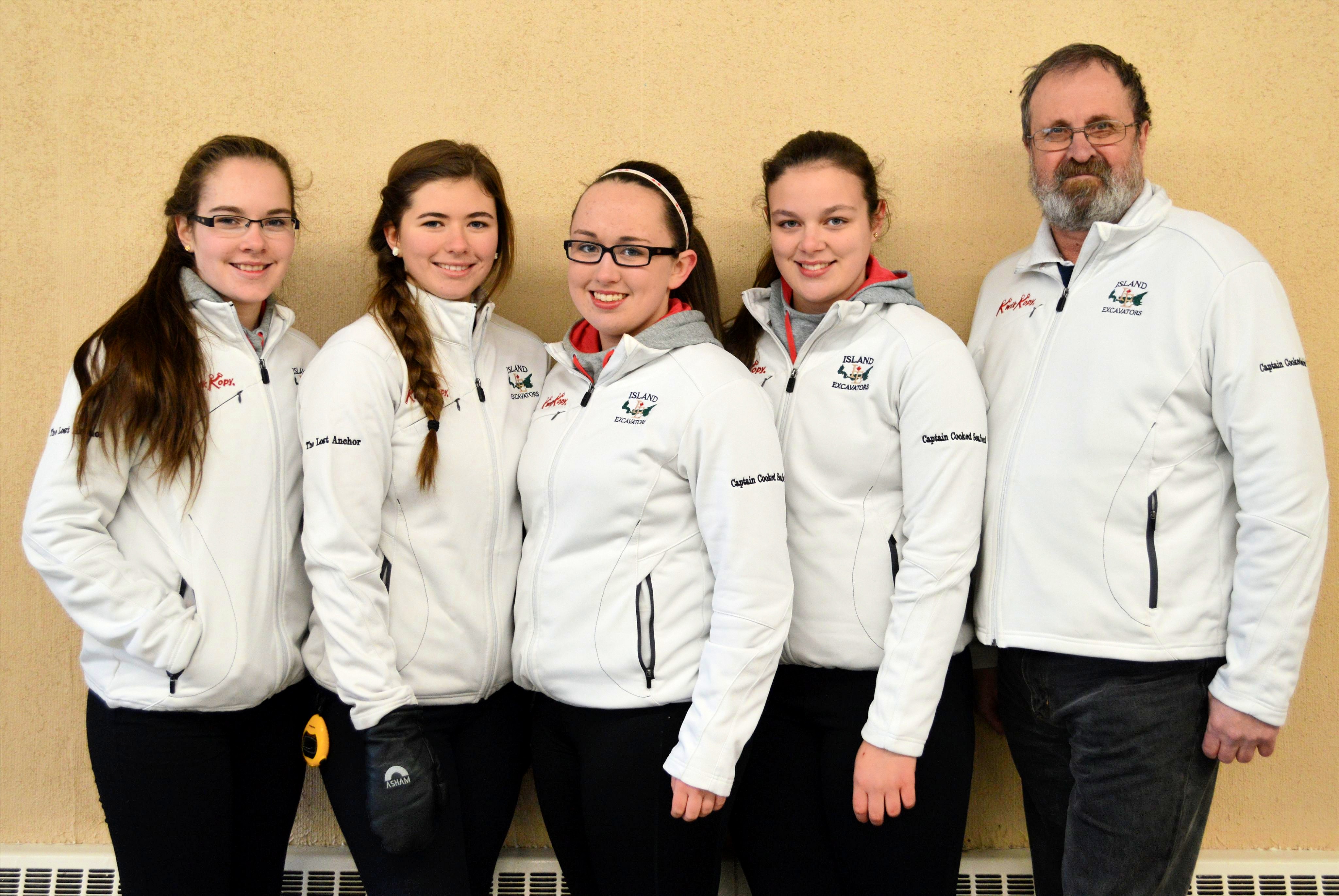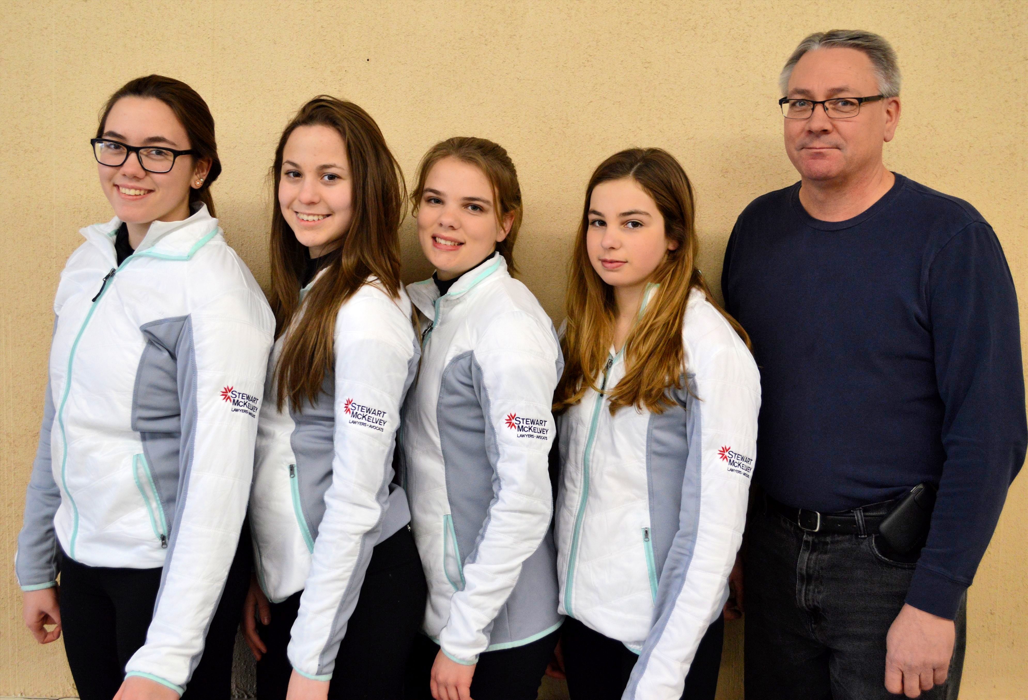 (L-R): Kaleigh MacKay, Danielle Collings, Alyssa Wright, Kaleigh Peters, coach A.J. Campbell