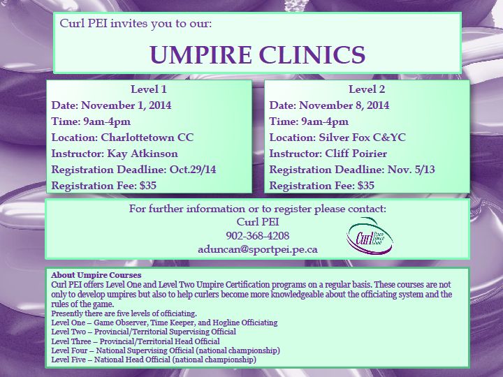 Curl PEI is holding two Umpire Clinics: