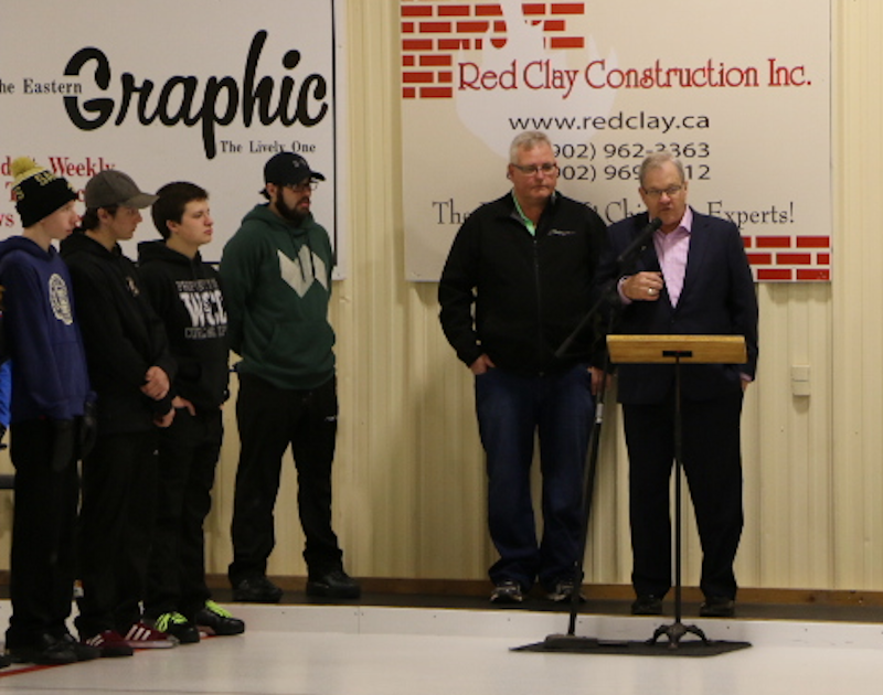 The opening ceremonies took place between today’s two draws, with the teams marching in to bagpipe music, and Master of Ceremonies – Montague Club president Scott Annear introducing a number of guests, including representatives from the Town, Curl PEI, and area Member of Parliament Lawrence MacAulay.