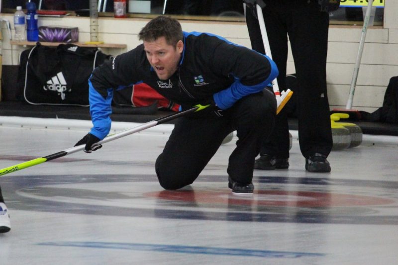Skip Jamie Newson yells during their opening match of the P.E.I. Tankard Wednesday in Summerside. Competition continues until Sunday at the Silver Fox Curling and Yacht Community Complex in Summerside.