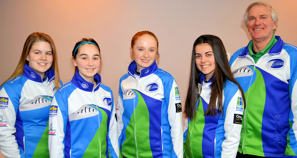 The Lauren Ferguson-skipped rink from Cornwall, Crapaud and Charlottetown will represent the Island at the 2019 Canada Games in Red Deer, Alta. Team members are, from left, Ferguson, third Katie Shaw, second Alexis Burris, lead Lexie Murray and coach David Murphy. – Contributed