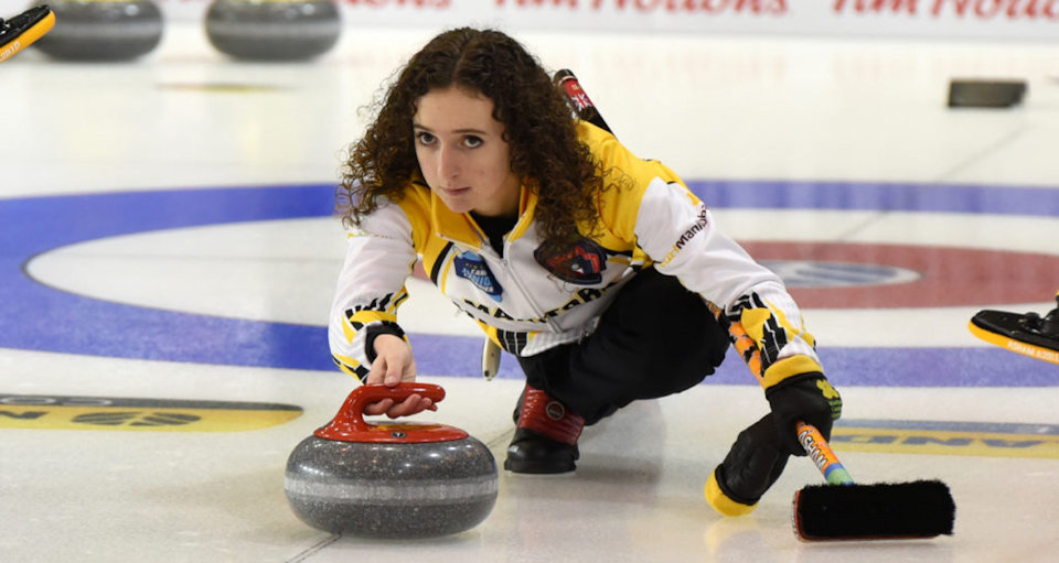 Mackenzie Zacharias delivering a rock at the 2019 New Holland Canadian Juniors (Curling Canada/Melanie Johnson photo)