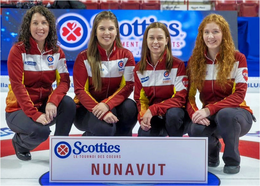 Team Nunavut (L-R): Lori Eddy (skip), Sadie Pinksen (third), Alison Griffin (2nd), Kaitlin MacDonald (lead) Coach Donalda Mattie (not in picture)