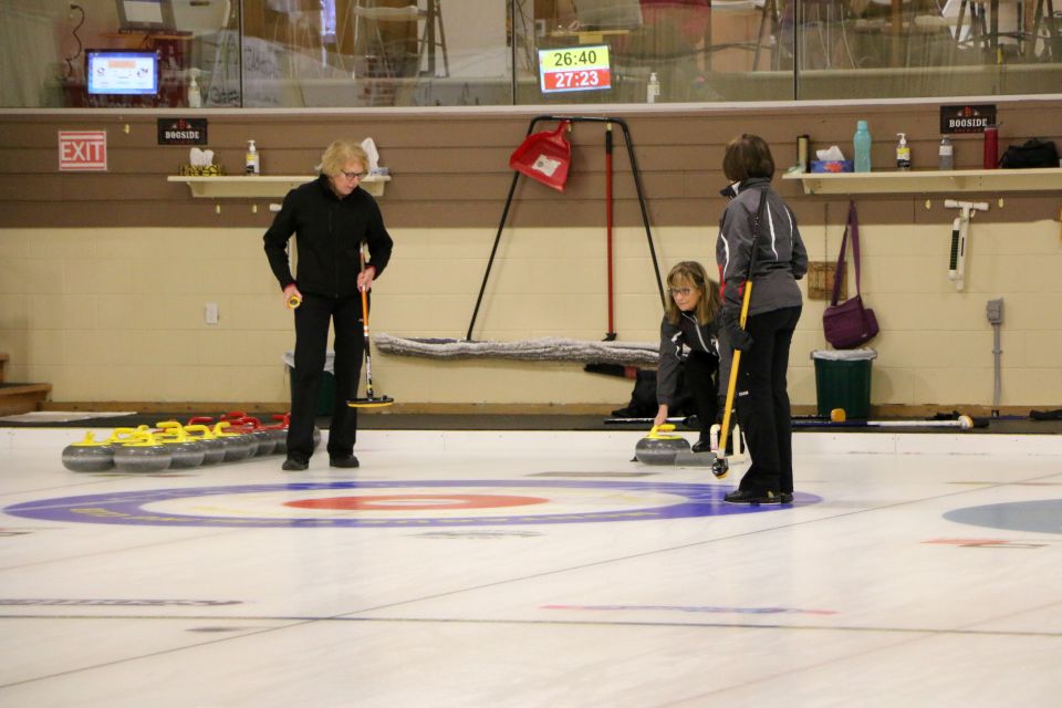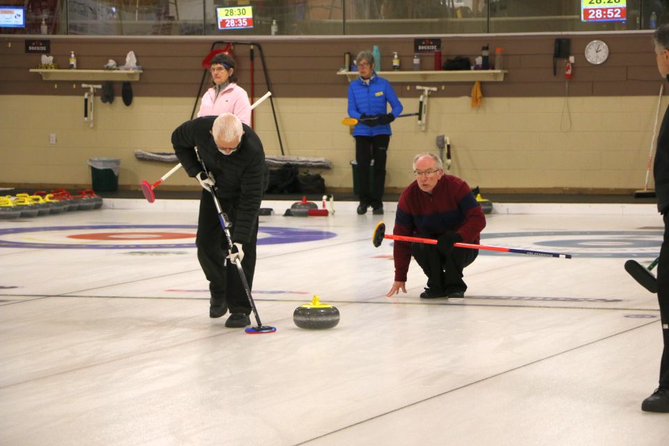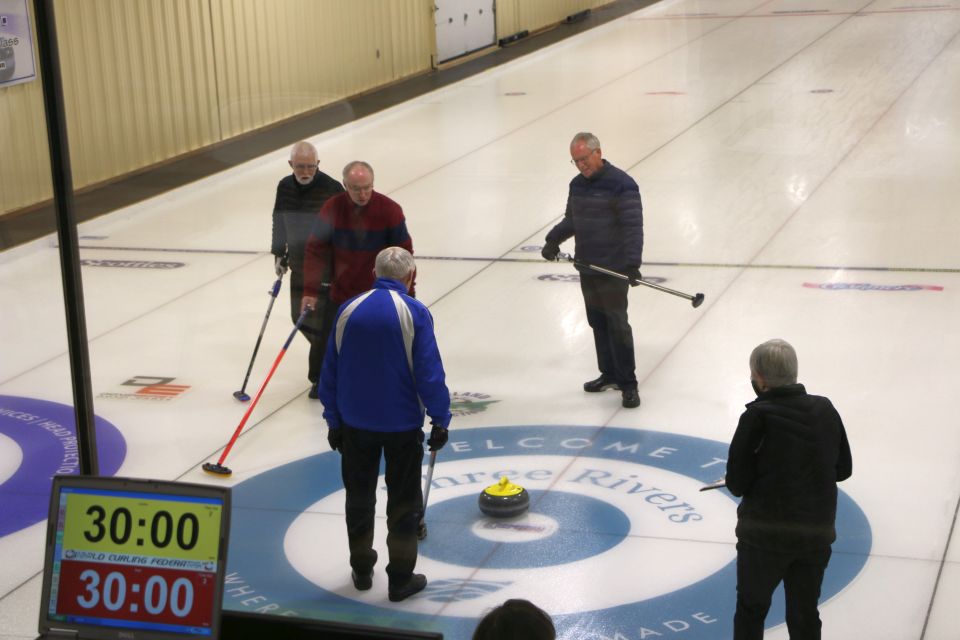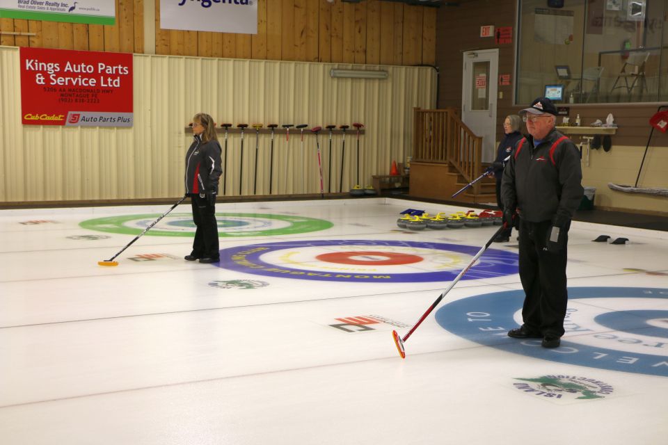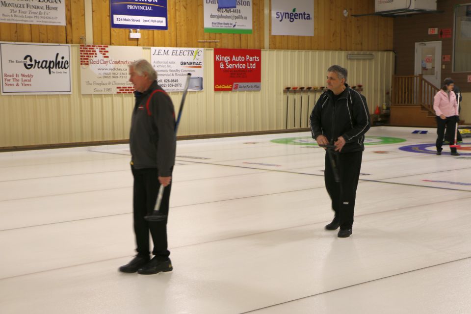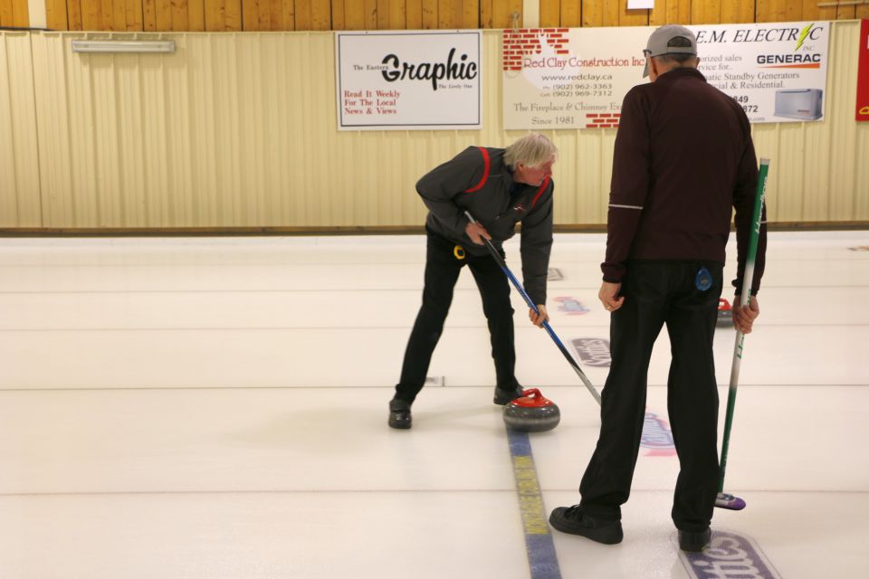 Here are photos from Draw 2 of the PEI Masters (60+) Curling Championship, which got underway today (Friday) at the Montague Curling Club. This draw features the “A” Qualifiers of the Modified Triple Knockout Draw, with the defending champion Lou Nowlan team from the Silver Fox taking on Cornwall’s Bill Hope in the Men’s game, and the defending champion Sandy Hope team taking on their Cornwall clubmates the Shirley Berry rink.